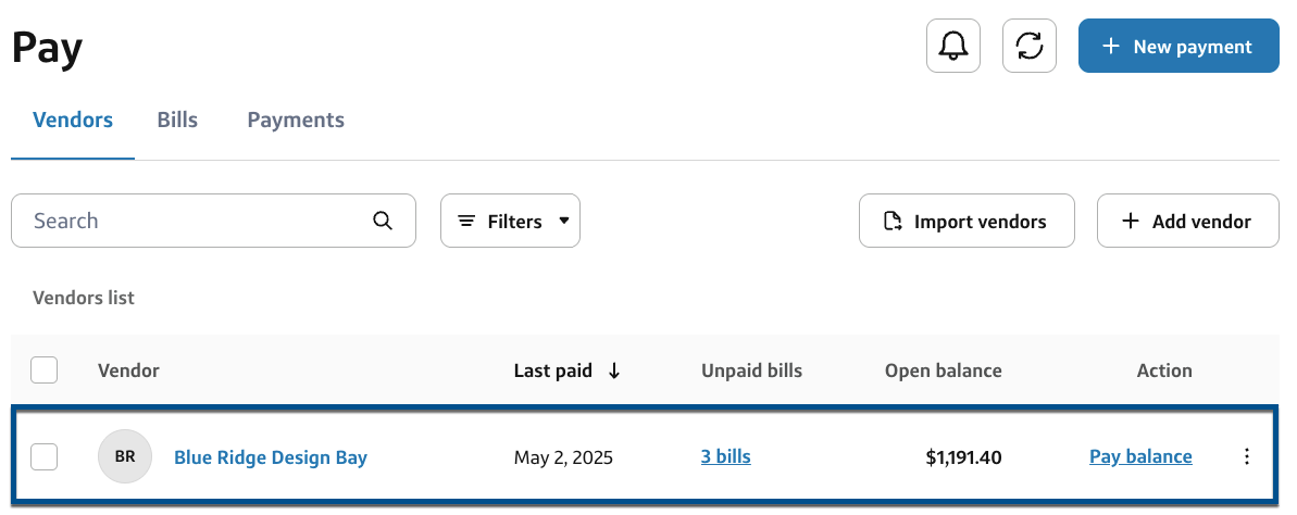 That's it! You've successfully combined multiple bills for the same vendor and sent them as a single payment. Your vendor will receive an email breakdown of the combined payment. You can find this combined payment in the Payments tab.