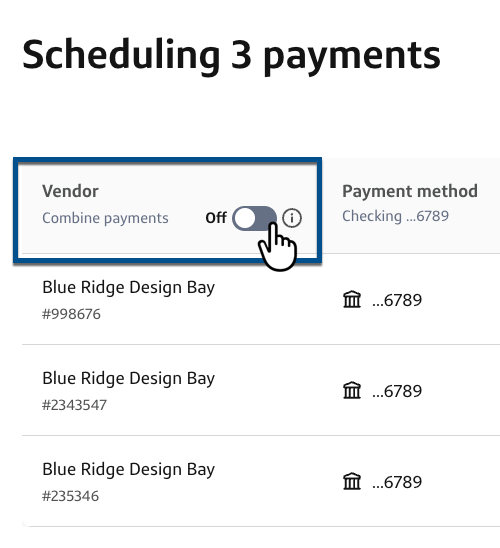 4- To combine the bills into a single payment, toggle on Combine payments.