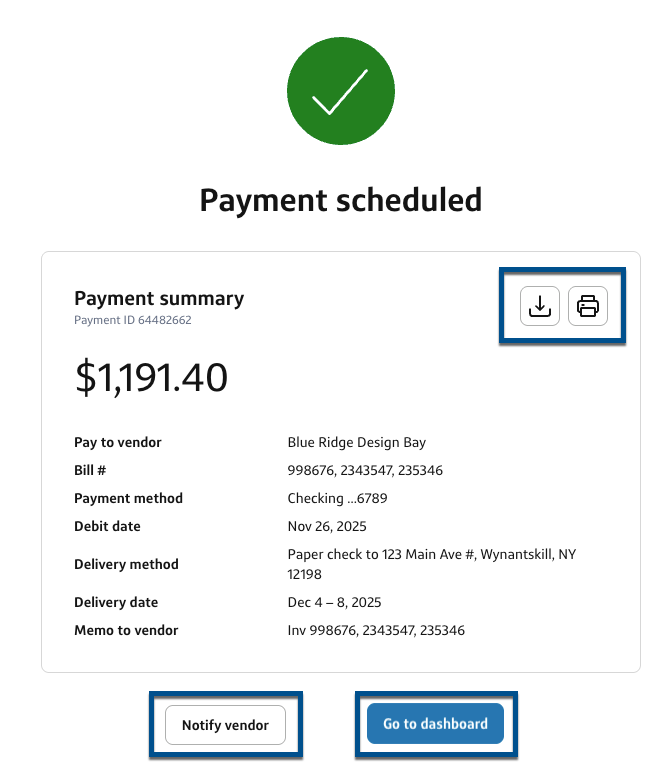 b. To email your vendor a detailed summary of the payment, select Notify vendor.