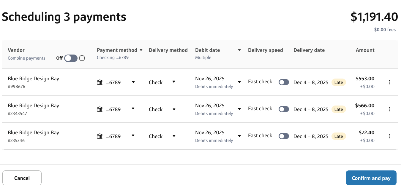 The bottom line: Your combined payment provides both you and your vendor with a cleaner, more organized payment process.