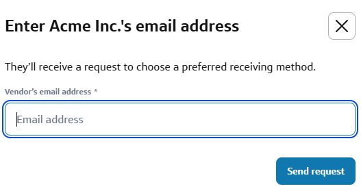 Please note: If we don’t have your vendor’s email, you’ll see a pop-up message. Enter their email and select Send request.